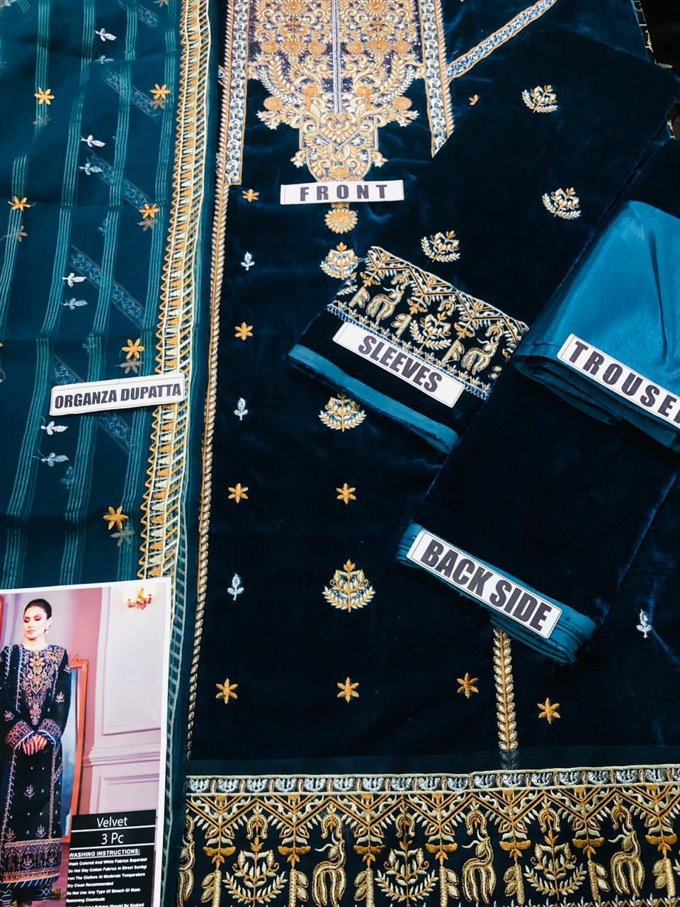 Embroidered velvet sleeves Embroidered Organza Duppata