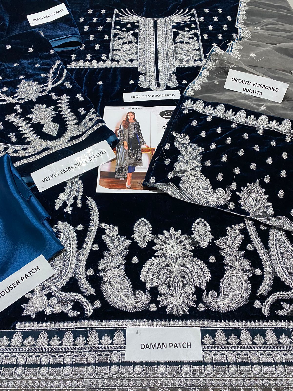 Velvet embroidery fancy 3pcs